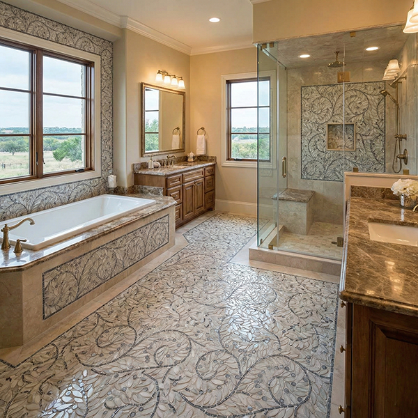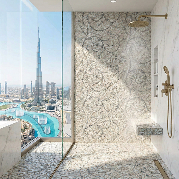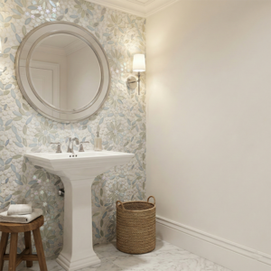 SICIS NeoGlass Decor glass & stone mosaics are tesserae hand-laid to create artistic patterns. Exciting plays of light occur from the golds and metallic shimmering and reflecting, offset by the traditional transparent and iridescent glass, and contrasted with natural marble. NeoGlass Decors are 1/4″ (6mm) thick rendering it particularly resistant to time and wear and uniquely appropriate for high-traffic floors. SICIS glass is a great choice for your next mosaic tile project, great for kitchen backsplashes, fireplace surround, bathroom floor/wall/shower, steam shower, swimming pool and spa.