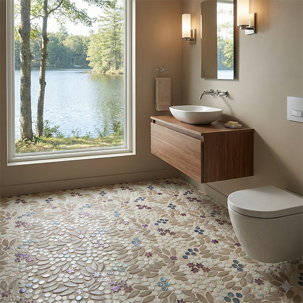 SICIS NeoGlass Decor glass & stone mosaics are tesserae hand-laid to create artistic patterns. Exciting plays of light occur from the golds and metallic shimmering and reflecting, offset by the traditional transparent and iridescent glass, and contrasted with natural marble. NeoGlass Decors are 1/4″ (6mm) thick rendering it particularly resistant to time and wear and uniquely appropriate for high-traffic floors. SICIS glass is a great choice for your next mosaic tile project, great for kitchen backsplashes, fireplace surround, bathroom floor/wall/shower, steam shower, swimming pool and spa.